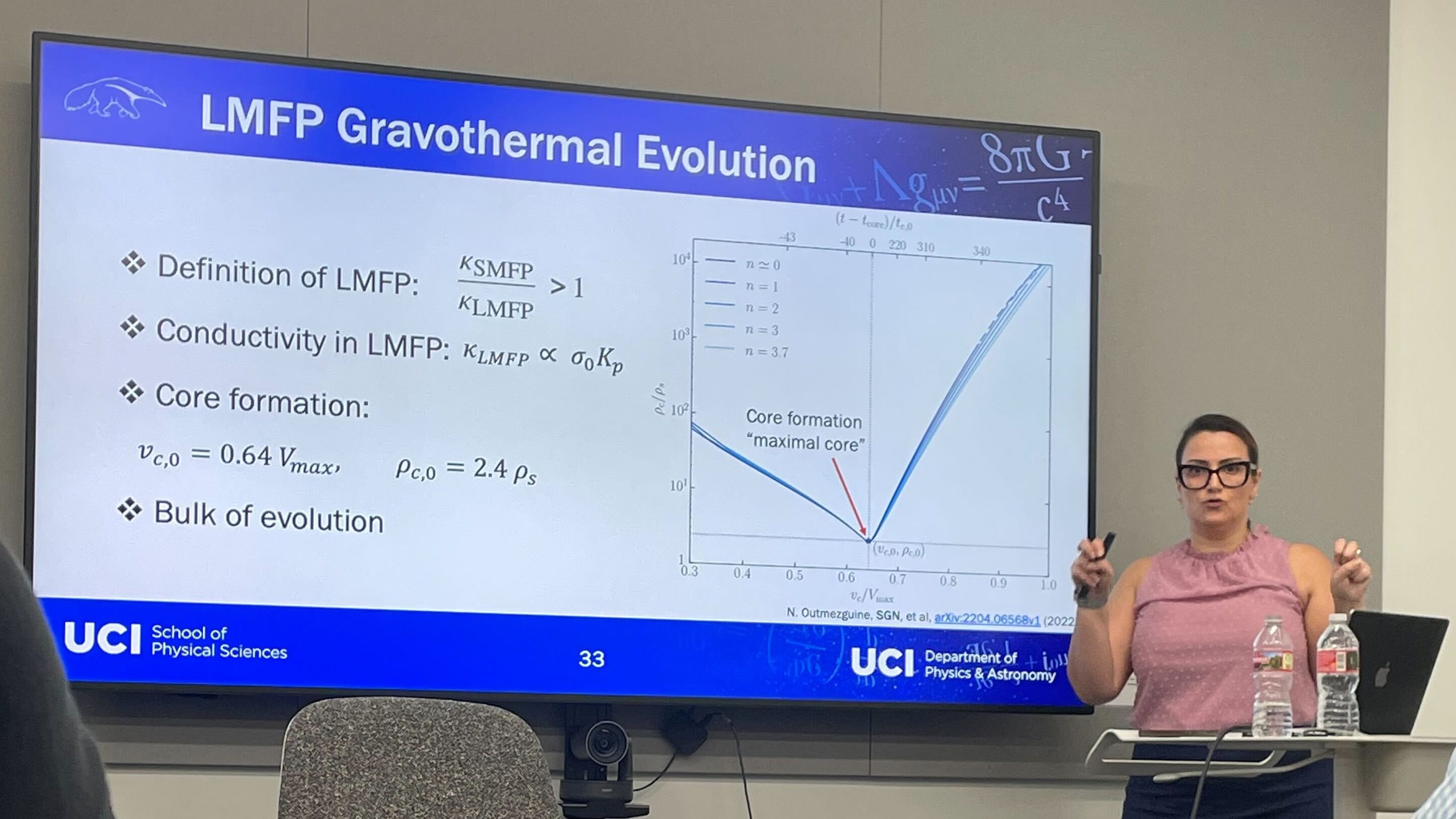 Hello all! I’m Sophia Gad-Nasr, and I completed my PhD in physics at UC Irvine with a focus on cosmology and astroparticle theory. My research focuses on figuring out what the universe is made of, and how it grows, using simulations! I work on a type of dark matter beyond the Cold Dark Matter paradigm—Self-Interacting Dark Matter. You can read about this type of dark matter, and others, in a blog post I wrote.